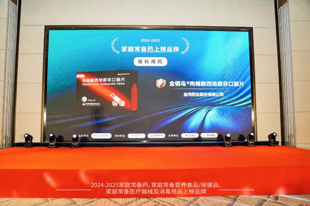 金鸿药业旗下核心产品金钢鸟®枸橼酸西地那非口崩片凭借创新剂型与临床效果,荣登“2024-2025年度家庭常备药(男科用药)上榜品牌”!
