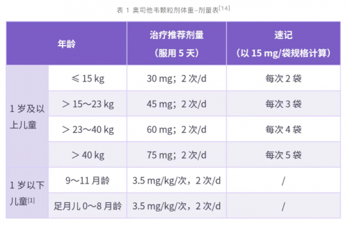 奥司他韦需根据年龄、体重调整剂量,疗程固定为5天: